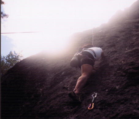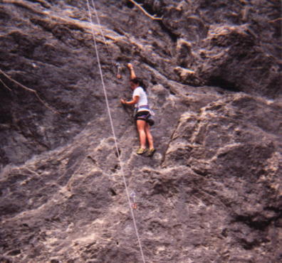 Me climbing at Yamnuska. I am very high up. It was quite frightening. I am brave.